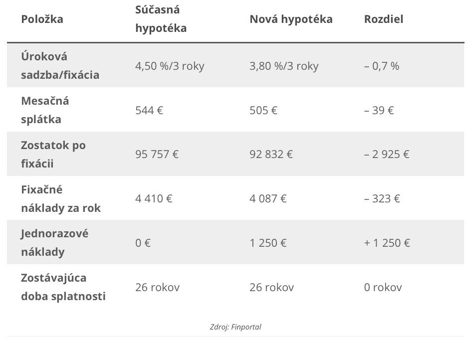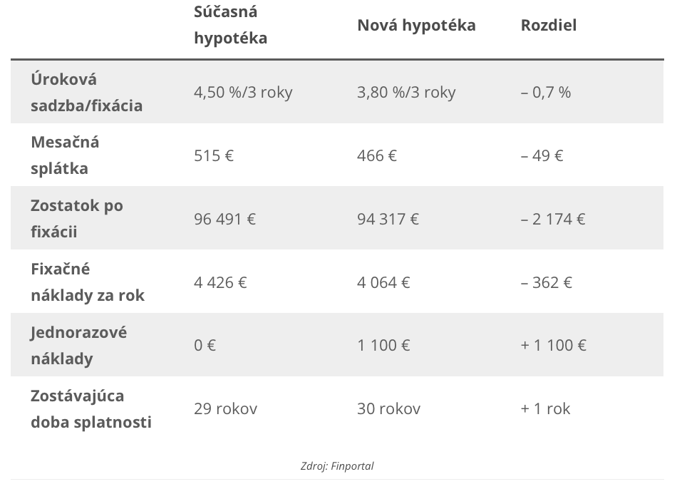 Príklad na refinancovanie hypotekárneho úveru č. 1: